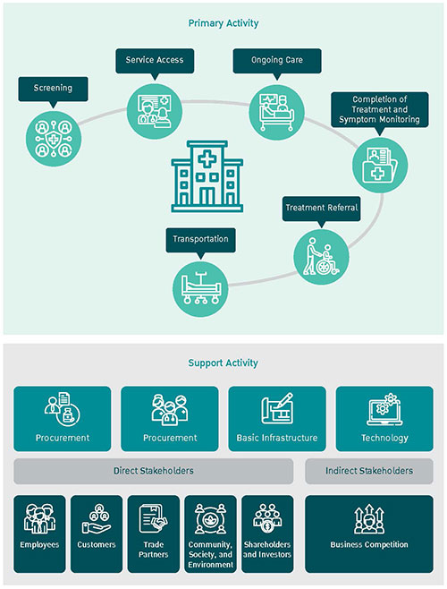 The Company places great importance on managing its business value chain, which serves as a key tool for enhancing competitiveness and mitigating sustainability-related operational risks. The Corporate Governance and Business Development Committee conducts an analysis of the Company’s core activities across the entire value chain, from upstream to downstream. This process includes identifying key stakeholders who are either significantly impacted by or have a business relationship with these activities. The Committee then analyzes and reviews the relationships and the positive and negative impacts of the Company's activities on stakeholders.
