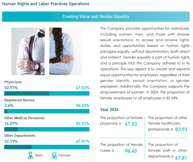 Currently, the Company is committed to conducting business that brings about positive changes to society. The goal is to create sustainable well-being in the context of the social dimension, with a balanced approach as the organization's main mission in healthcare and improving the quality of life for people. The Company has implemented this through four key areas, which include respect for human rights and labor practices, responsibility towards personnel, responsibility towards customers, and involvement in improving the quality of life for communities