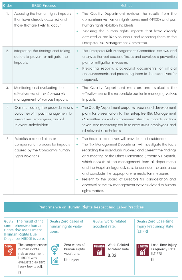 The Company conducts regular monitoring of human rights performance and provides continuous communication, education, and training for employees on human rights matters to raise awareness. This is to prevent issues that may pose a risk of negative impacts through the Company's activities and business relationships. The performance results for 2024 are as follows: